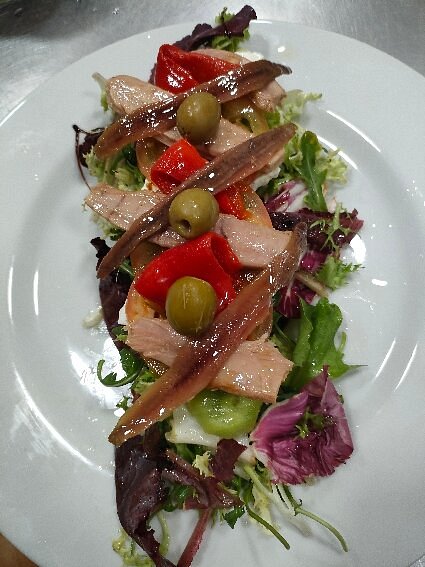 Lechuga, tomate, atún, huevo, jamón york, queso y pollo